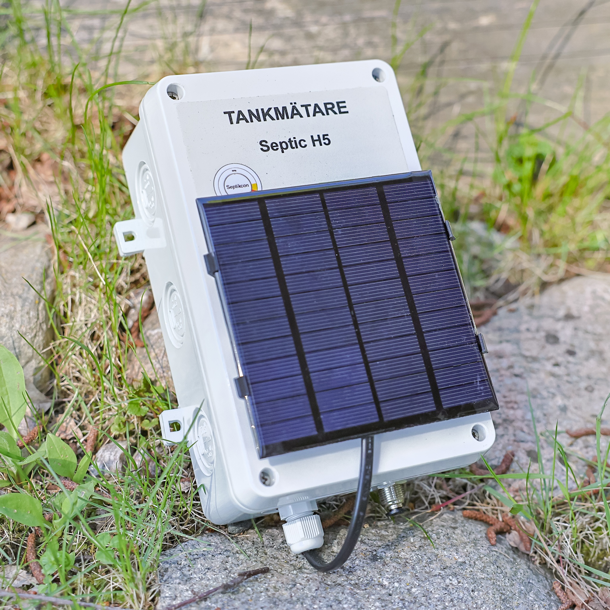 Digital nivåmätare ansluten till Septikcon mätsystem. Med monterad solcell och laddbara batterier. Kan anpassas till nivåmätning i vattenbrunnar. Abonnemang för SIM-kort tillkommer med årskostnad 875 kr inkl. moms.